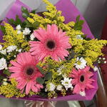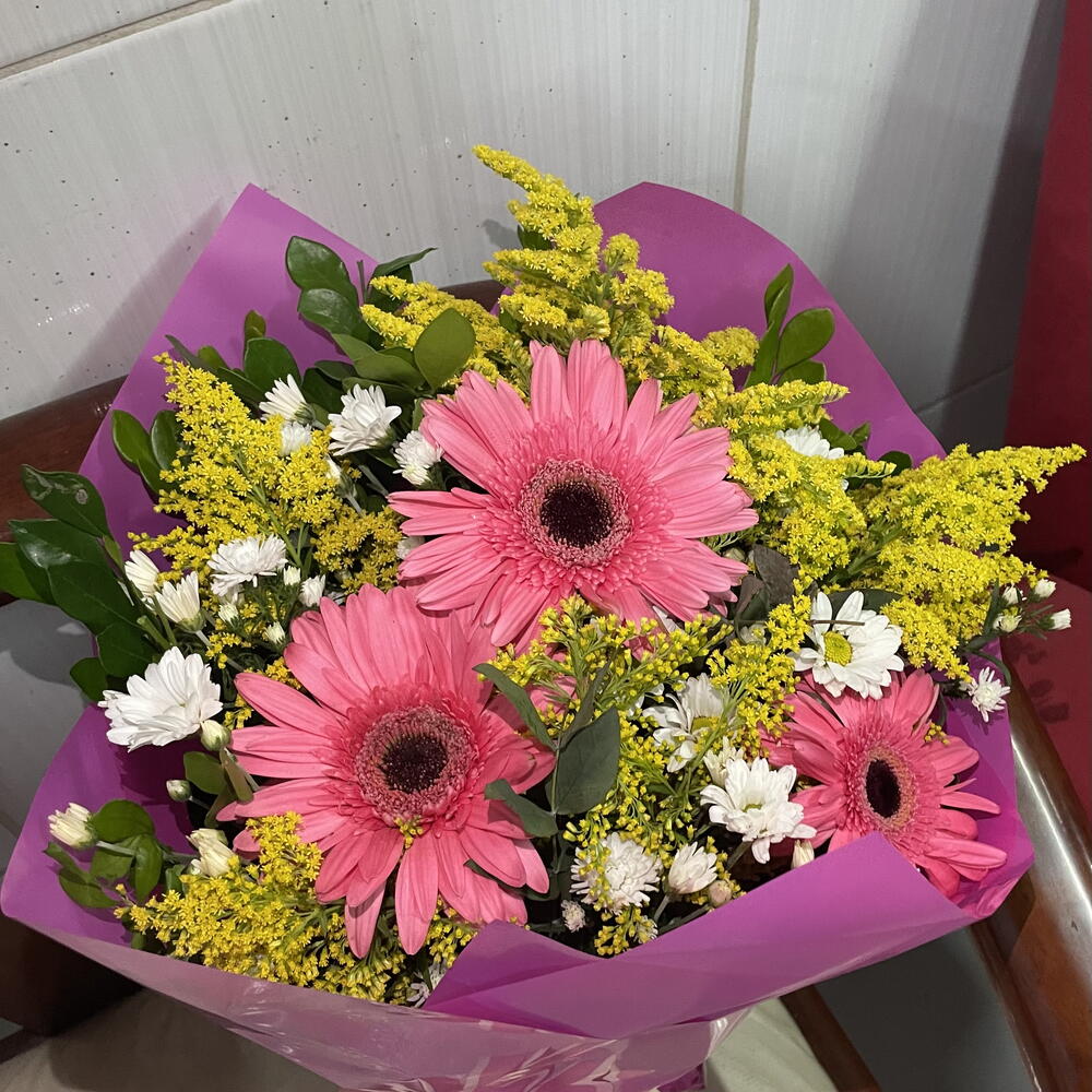 Este encantador buquê é composto por três deslumbrantes gérberas rosas que capturam a essência da beleza e da feminilidade. Completando a composição, encontramos uma elegante folhagem, fazendo uma perfeita simbiose com as flores. O conjunto vem num vistoso embrulho, aperfeiçoado com um delicado laço, tornando-se o presente ideal para expressar seus sentimentos mais sinceros.