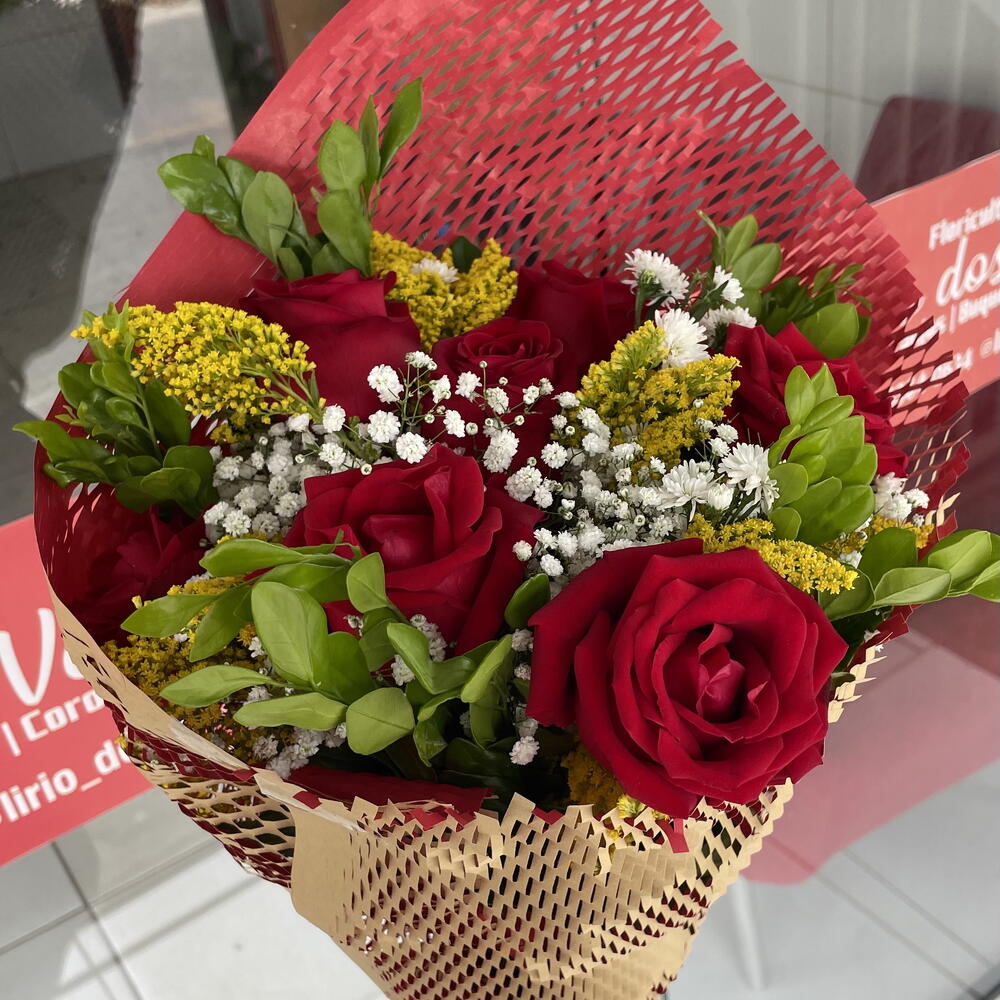 Buquê com 7 Rosas Vermelhas com Composição