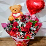 Um presente apaixonante para momentos inesquecíveis ❤️ Buquê exuberante de rosas vermelhas com delicadas flores complementares, acompanhado com Ursinho de 15 cm. O balão em formato de coração e os laços sofisticados deixam tudo ainda mais encantador. Perfeito para surpreender e declarar todo o seu amor com elegância!