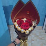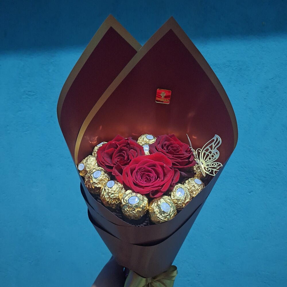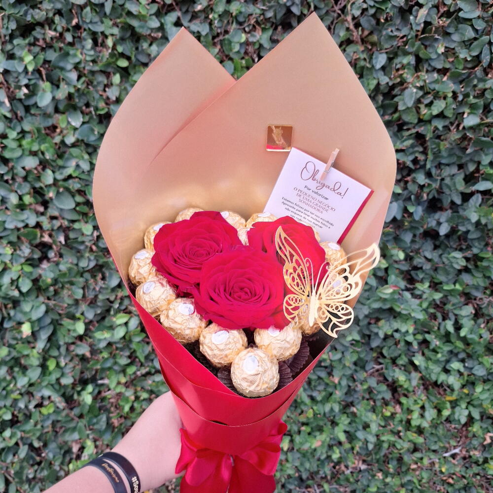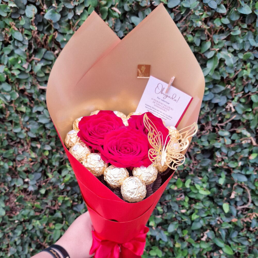 rosa colombianas - 1 pcs bombons ferrero rocher - 12 pcs cartão - 1 pcs