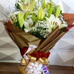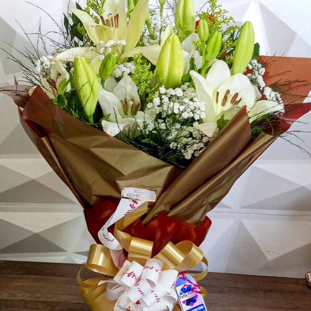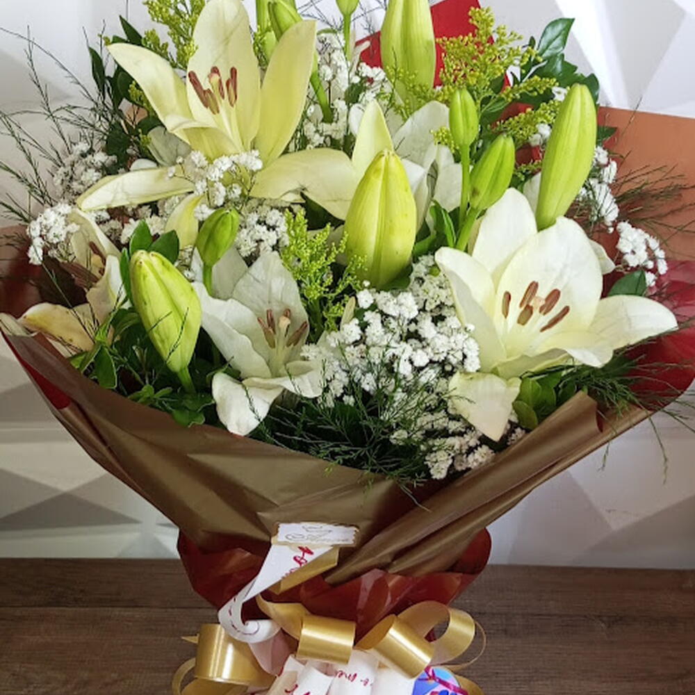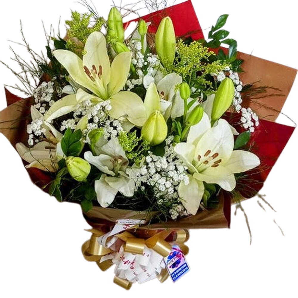 Um buquê que transmite paz, pureza e elegância em cada detalhe. Este arranjo exuberante une a delicadeza dos lírios brancos — símbolo de respeito, carinho e renovação — à suavidade da gipsófila, conhecida como ‘flor do amor eterno’. Embalado com requinte em tons terrosos e dourados, esse buquê é ideal para presentear em ocasiões marcantes como Dia dos Pais, aniversários, agradecimentos ou homenagens especiais. Um presente que encanta com a beleza natural das flores e emociona com a força do significado.”