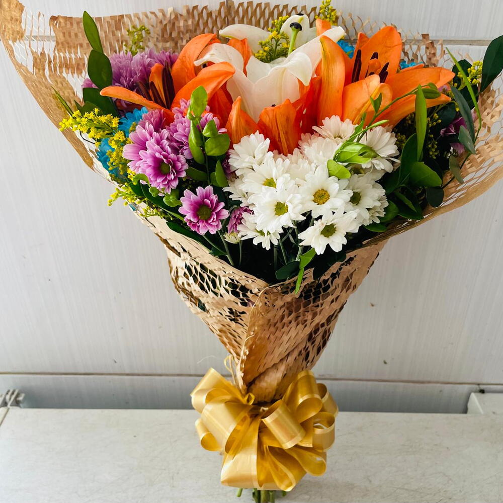 Este buquê é composto por quatro lírios encantadores, cuidadosamente selecionados para proporcionar a beleza delicada e sublime desta flor. Perfeito para expressar sentimentos de admiração e respeito, este buquê é um presente que certamente tocará o coração de quem o receber.