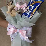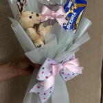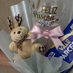 barra de chocolate - 1 pcs buquê decorado - 1 pcs bubble personalizado 5’ - 1 pcs