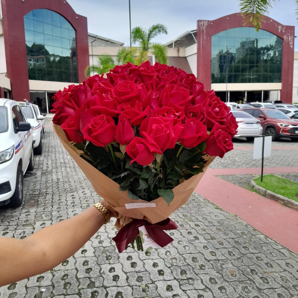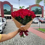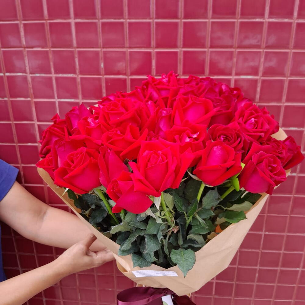 Este deslumbrante buquê de 50 rosas vermelhas é a expressão máxima da paixão e do amor. Apresentando-se em um sofisticado embrulho de papel Kraft, cada rosa foi cuidadosamente selecionada para promover a máxima beleza e frescor. Finalizado com um laço elegante, este buquê é não só um presente, mas também um gesto de luxo e carinho.