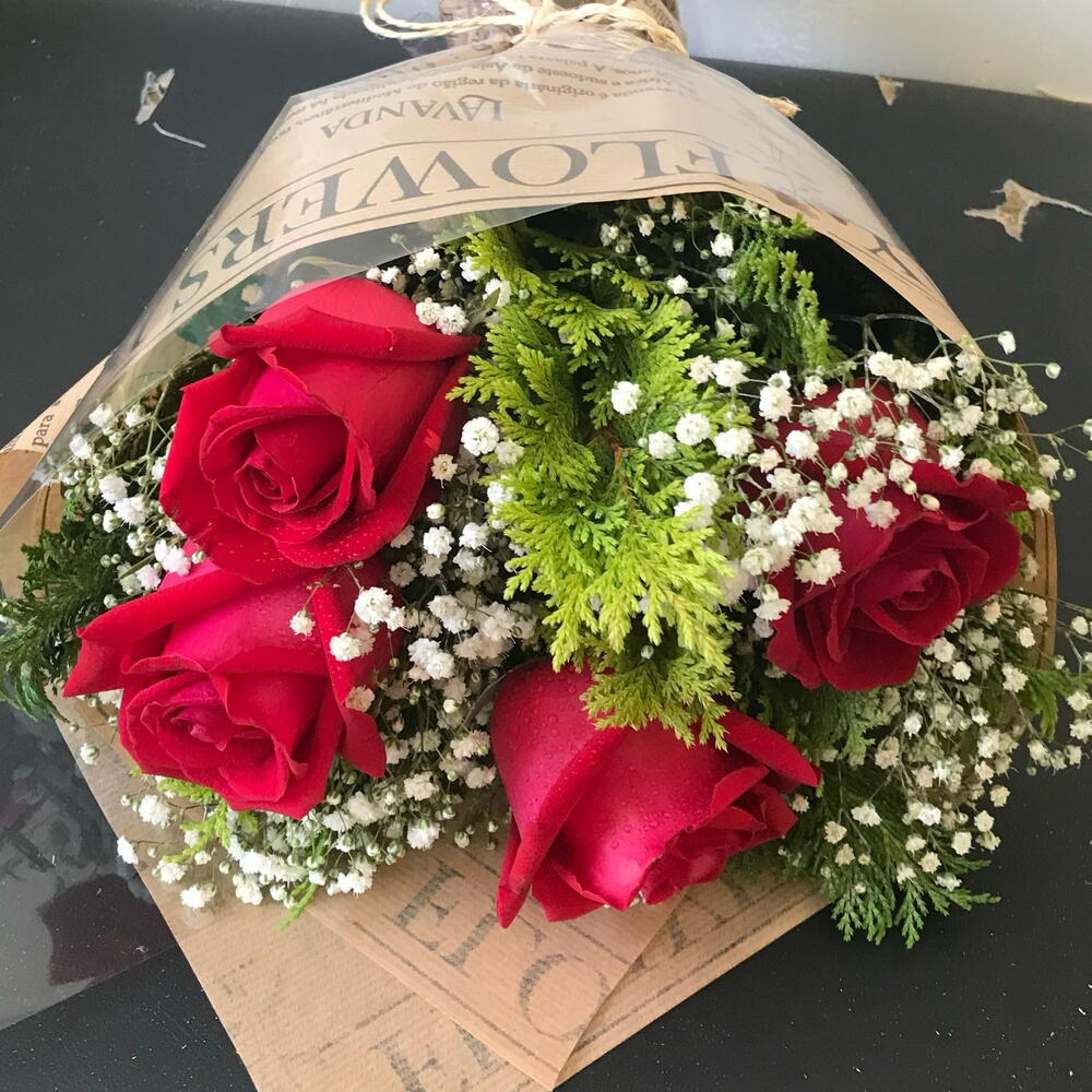 Um buquê clássico e romântico! 😊 Um arranjo de 4 rosas vermelhas, envolto em papel kraft, que exala paixão e amor. As rosas, com suas pétalas aveludadas e cor intensa, são o símbolo perfeito do romance e da dedicação. O papel kraft confere um charme rústico e autêntico ao buquê, tornando-o um presente inesquecível para alguém especial. 💐