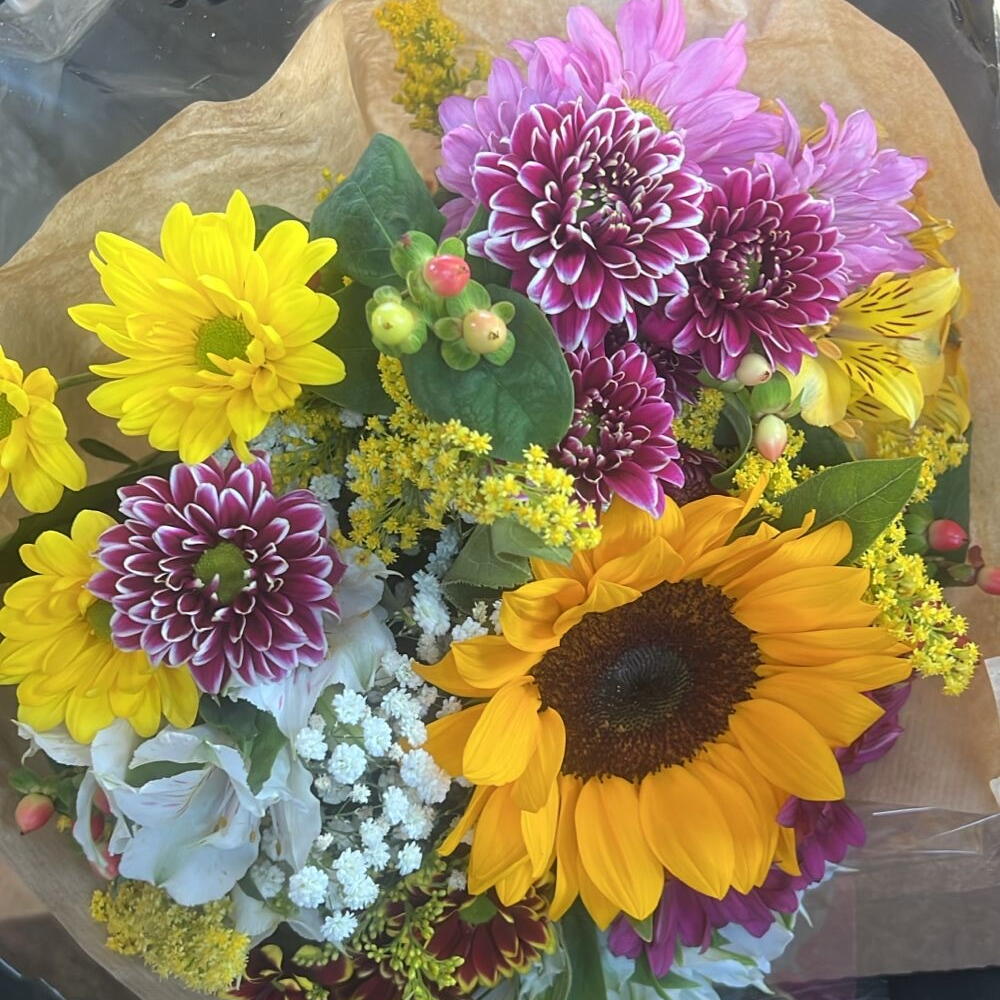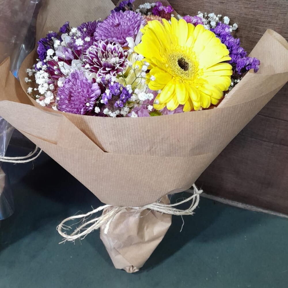Este lindo buquê é composto por uma seleção eclética e maravilhosa de flores diversas, para trazer um toque de beleza natural a qualquer ambiente. Embalado com delicadeza em um papel kraft de tom nude, este arranjo apresenta um girassol fresco e radiante, garantindo ser o centro das atenções. Para adicionar ainda mais cor e textura, uma unidade de astromelias e folhagens mistas também estão incluídas. Este buquê é o presente perfeito para expressar sentimentos de amor, admiração, ou simplesmente para iluminar o dia de alguém especial.