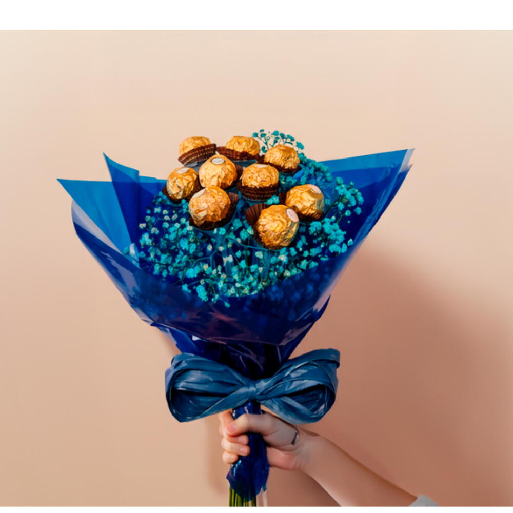 O Buquê Doçura Celestial é a combinação perfeita de elegância e doçura, unindo a delicadeza da Gypsophila azul ao luxo dos chocolates Ferrero Rocher. Composto por 9 chocolates Ferrero Rocher fixados em hastes, entrelaçados com a suave Gypsophila, esse arranjo deslumbrante é ideal para ocasiões especiais, transmitindo uma mensagem de carinho, sofisticação e afeto. Para completar, você pode adicionar uma cartinha personalizada com a sua mensagem, permitindo expressar seus sentimentos de maneira única e tocante.