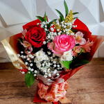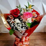 Este buquê gracioso é meticulosamente arranjado com duas rosas românticas, adornado com delicados complementos. Ele é elegantemente embalado numa única unidade, e finalizado com um requintado laço, criando um presente perfeito para aquela pessoa especial. Obs: A segunda rosa poderá ocorrer variação de cor conforme disponibilidade no dia.