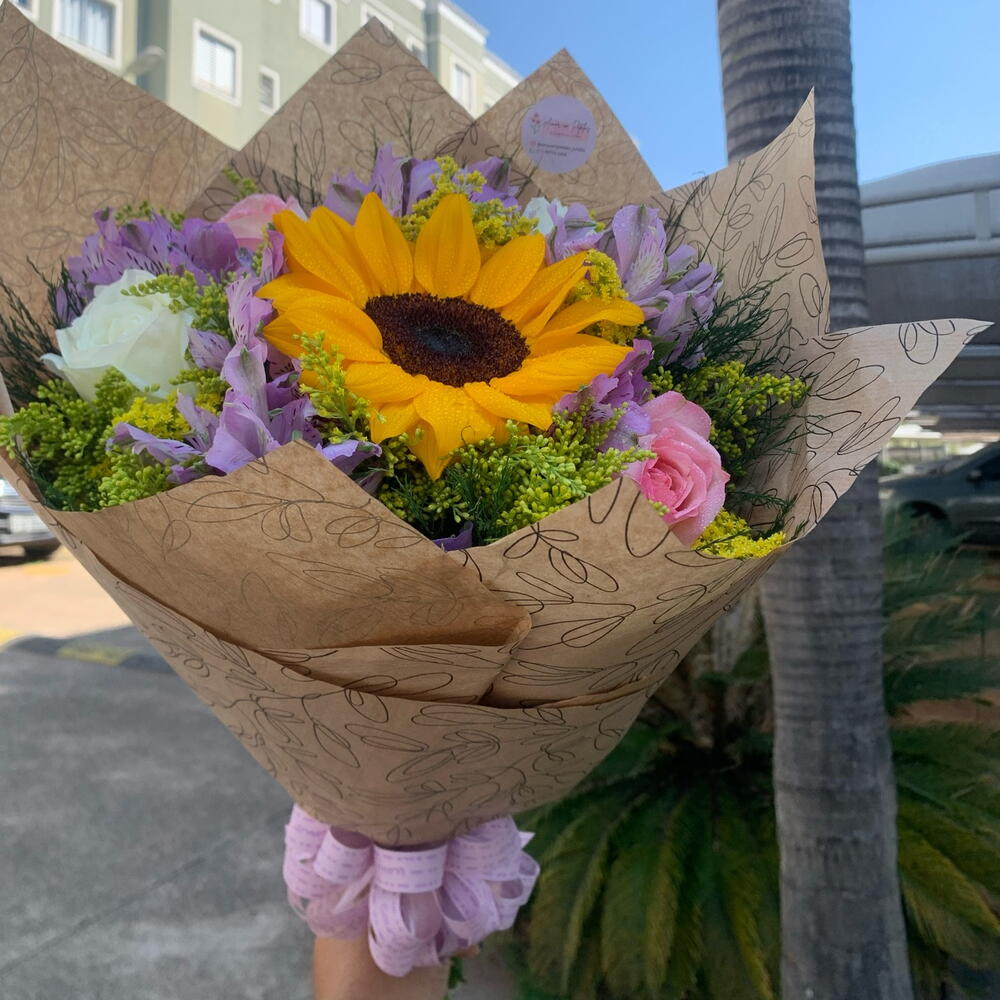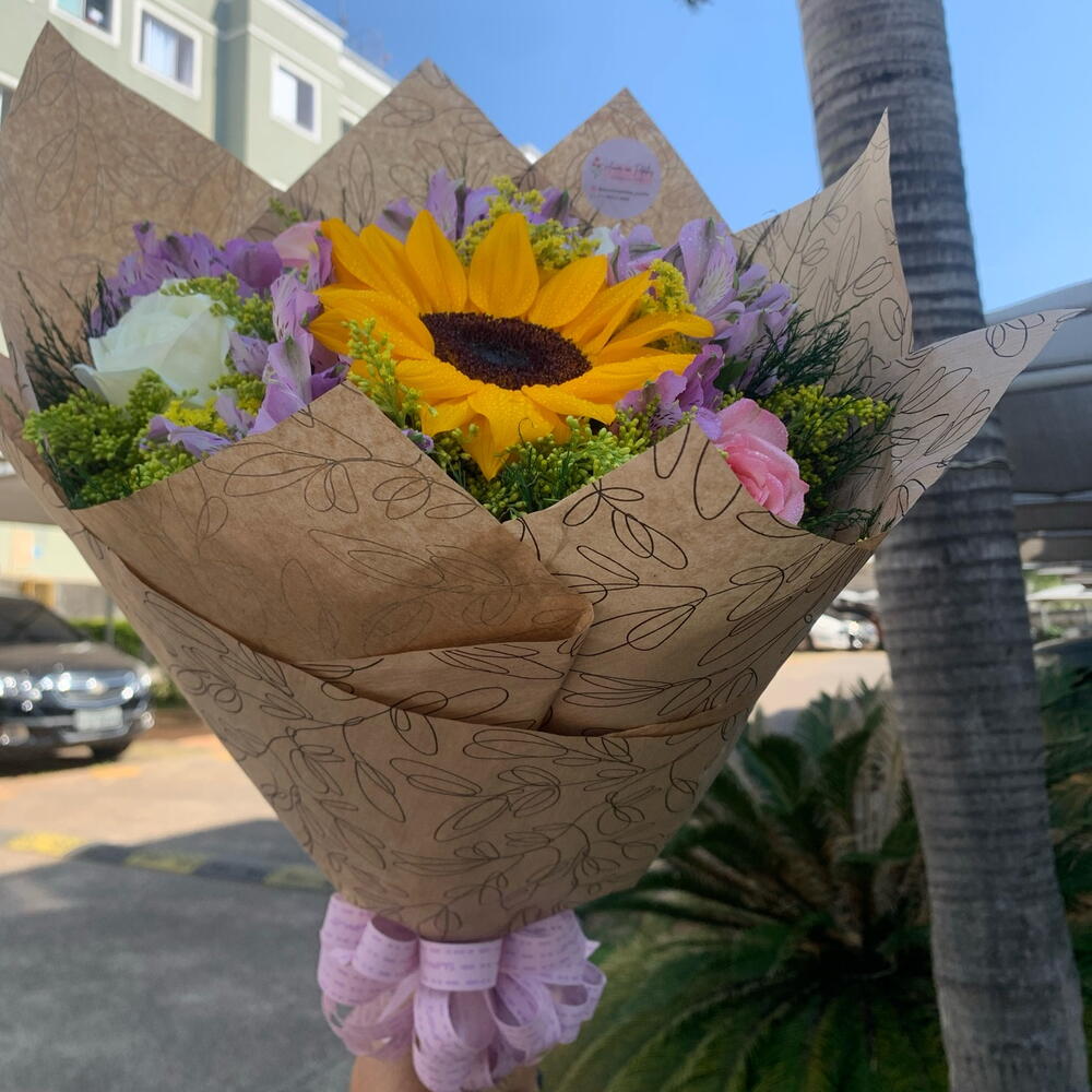 Este buquê é uma sofisticada composição de 2 rosas cor-de-rosa, 2 rosas branca e 1 girassol, harmonizados com folhagens variadas para dar um toque único e elegante. Os detalhes finais são completados por uma embalagem exclusiva e um laço, adicionando um toque de encanto e romantismo. Ideal para expressar os sentimentos mais puros e belos, este buquê é perfeito para surpreender e encantar seus entes queridos.