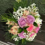 Este encantador buquê é perfeito para momentos especiais. Composto por uma unidade de gipsófila, destacando a delicadeza e a beleza da composição. Três rosas lilás e três rosas rosas adicionam um toque de romantismo e suavidade. As duas astromérias rosas e duas astromérias brancas trazem autenticidade com seu delicado contraste. As folhagens de ruscus e aspargo combinam perfeitamente com as flores, dando um ar de natureza e frescor ao buquê. Acompanha uma embalagem e um laço para manter a elegância e sofisticação do conjunto. Ideal para demonstrar todo o seu afeto e apreciação.