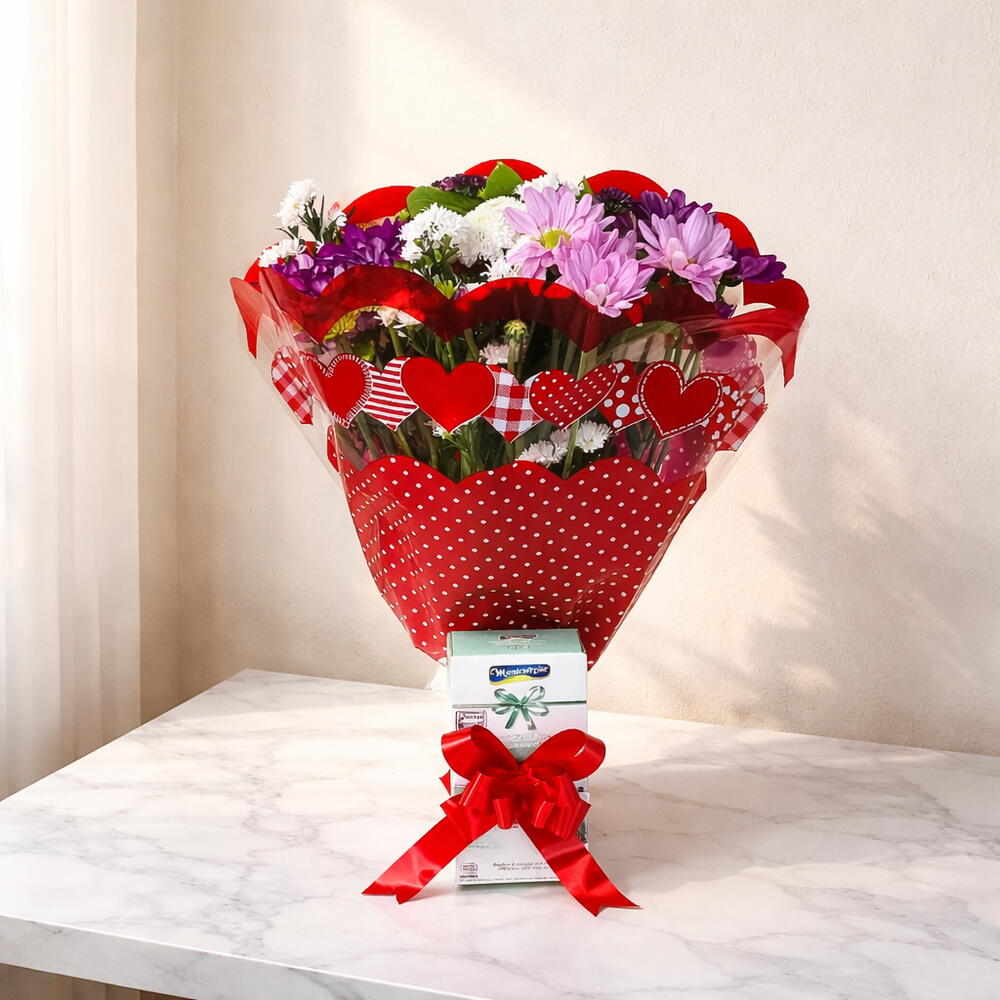 Encante-se com nosso Buquê maravilhosamente arranjado, que oferece uma sublime fusão da natureza em suas mãos. Composto por 1 unidade de folhagem luxuriante e delicado laço como embrulho, este buquê traz consigo a simplicidade rústica e a beleza colorida de 10 flores do campo variadas. Uma mistura de cores e texturas, que combina para criar um arranjo que merece estar no centro das atenções.