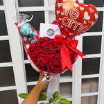 Buquê de flores permanentes – P + Pelucia, Balão coração e Bilhete