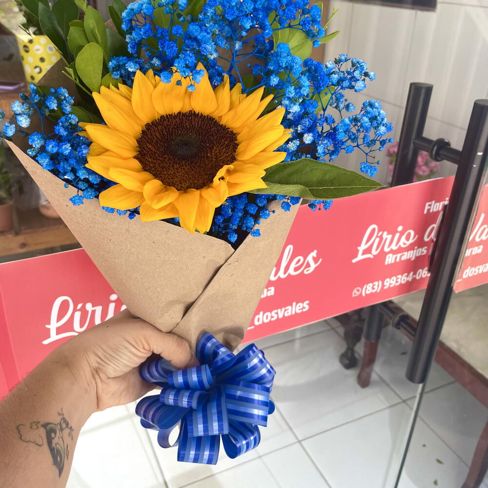 Encante-se com a beleza radiante deste buquê de girassol. Composto por uma unidade cuidadosamente selecionada, este arranjo promete trazer uma explosão de alegria e cor para o seu dia. Perfeito para qualquer ocasião, o girassol simboliza a luz e a positividade. Ilumine o dia de alguém com este belo presente!