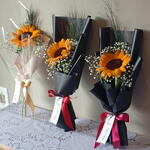 gypsophila - 3 pcs girassol - 1 pcs aspargo verde - 1 pcs embalagem coreana preto fosco ou embalagem clear - 1 pcs
