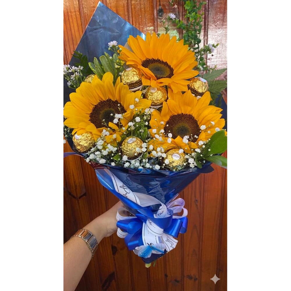 Surpreenda com um presente que combina beleza e sabor em um só momento! O buquê de girassol com chocolates Ferrero Rocher une a alegria vibrante dos girassóis — símbolo de felicidade e energia — com a sofisticação e o sabor irresistível dos chocolates, criando um presente inesquecível.