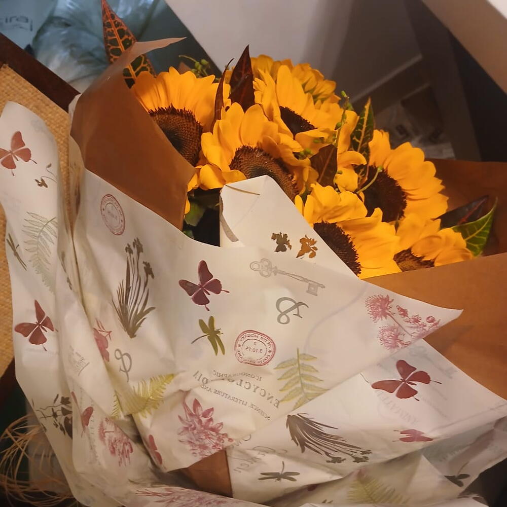 embalagem personalizada - 1 pcs girrassóis - 8 pcs folhagens selecionadas - 1 pcs