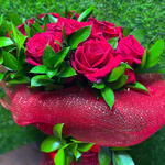 Este encantador buquê contém 10 luxuosas rosas importadas na cor vermelha, cuidadosamente arranjadas com um elegante ruscus. A apresentação é aprimorada por uma sofisticada embalagem tipo tela e é delicadamente finalizada com um laço requintado. Uma escolha perfeita para expressar seu amor e apreço em qualquer ocasião.