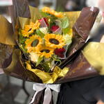 Este belíssimo buquê se destaca pela brilhante combinação de 5 girassóis cheios de vida, 3 rosas vermelhas vibrantes e 3 delicadas rosas brancas. Adornado com um elegante ramo de ruscus, encontra-se habilmente acondicionado numa sofisticada embalagem que combina perfeitamente com um delicado laço de cetim. Este arranjo floral traz consigo um fascínio natural capaz de encantar e surpreender tanto em ocasiões especiais quanto nos momentos cotidianos.