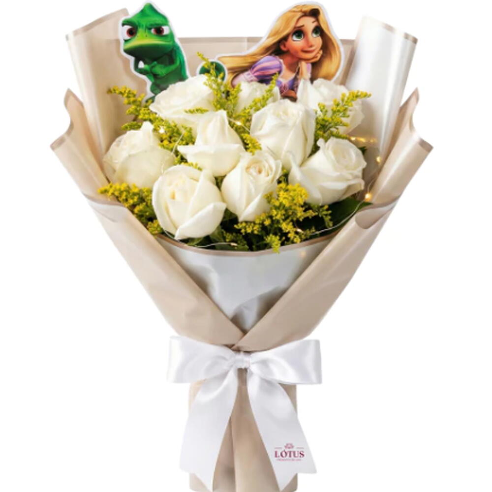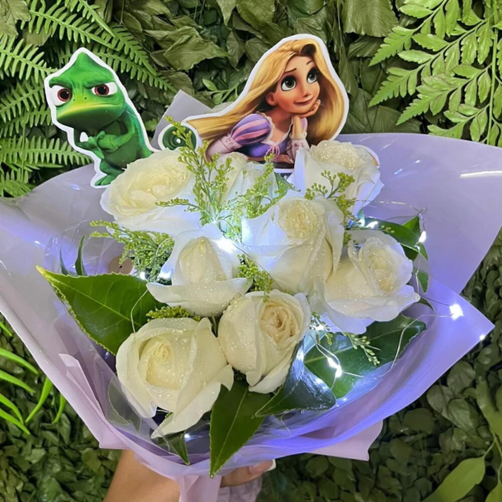 Olha, se você pensou que a Rapunzel só ficou famosa pelo cabelo dourado, está muito enganado. O verdadeiro segredo da magia dela? Foi um príncipe... bem, quase um príncipe. Mas, se você não está pronto para escalar torres e lutar contra vilões (quem está?), esse buquê vai te dar uma ajudinha no romance – e sem necessidade de qualquer feitiço! Itens inclusos: 9 Rosas Brancas Tango Led 2 Imagens de Alta Qualidade Entrega rápida e segura! Por que quem tem tempo para escalar uma torre quando você pode receber esse buquê agora mesmo? Liberte o amor e a magia do seu jeito! Garanta agora o Buquê Mundo Disney - Enrolados e faça ela se sentir uma princesa – sem os rolos de cabelo e a longa espera!