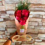 Arranjo com 5 rosas vermelhas, embaladas em papel kraft rústico com laço de sisal natural, trazendo um charme artesanal e minimalista. A pouca folhagem valoriza a intensidade das rosas, símbolo eterno de amor e paixão. Acompanha uma cartinha personalizada com sua mensagem, tornando o presente ainda mais especial. Perfeito para quem deseja surpreender com um gesto simples, elegante e cheio de significado.