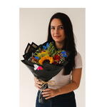 Este buquê deslumbrante é composto por três belos girassóis, embalados luxuosamente com um lindo laço. Acompanha também uma unidade de astromélias e complementos, tornando este buquê uma opção perfeita para expressar seu amor, ternura ou consideração. As cores vibrantes das flores acrescentam uma atmosfera alegre e festiva, tornando-o o presente perfeito para qualquer ocasião.