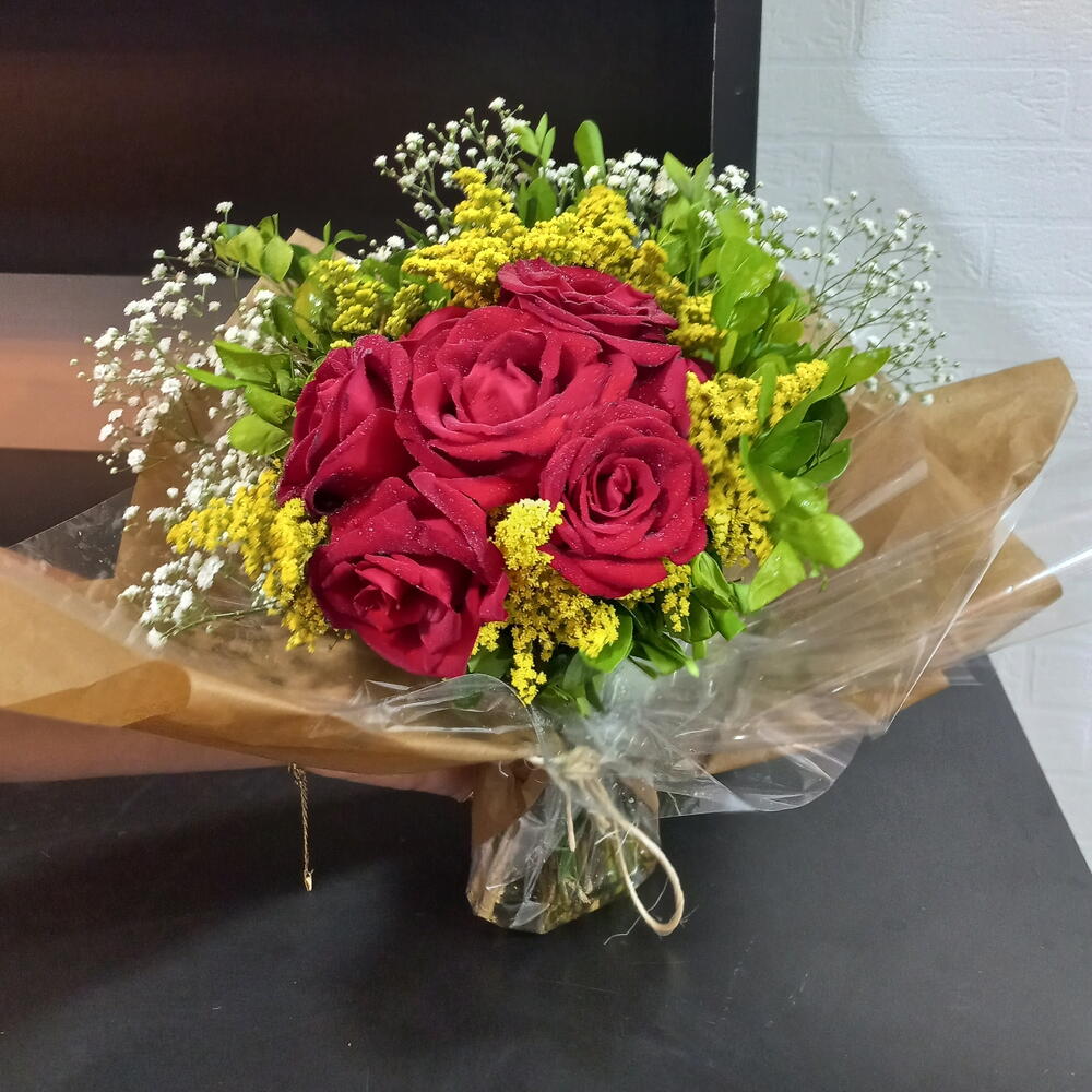 Encante-se com este lindo buquê composto por 7 emocionantes rosas vermelhas, realçadas por 5 unidades de Tango vibrante e outras 5 unidades da delicada Chuva de Prata. Um arranjo floral perfeitamente concebido para adicionar um toque de romantismo e sofisticação a qualquer ocasião. Garanta o seu e demonstre seus sentimentos com estilo e originalidade.
