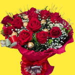 Buquê 15 Rosas e 8 Ferrero Rocher