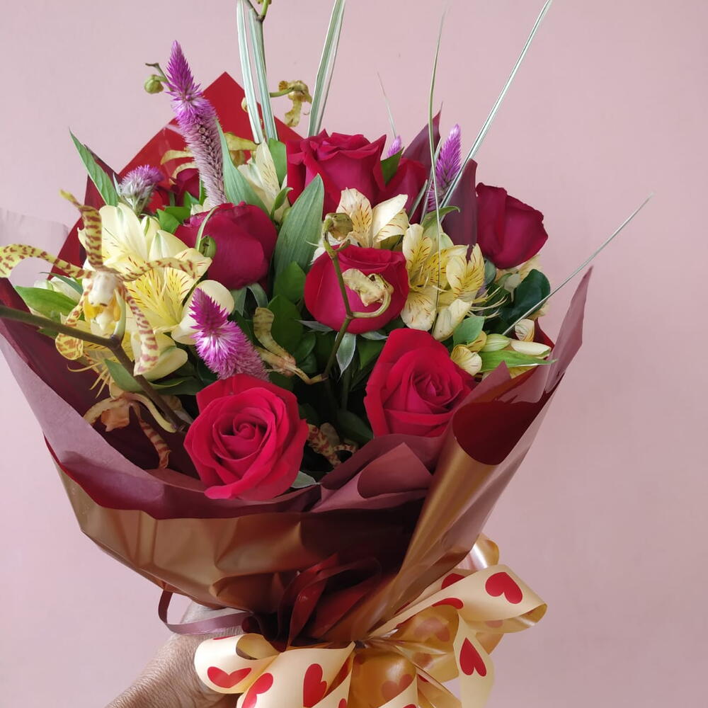 Este buquê encantador é composto por 10 rosas vermelhas de beleza radiante, acompanhadas por astromérias delicadas. A combinação perfeita de cores vivas e sutis torna-o um presente ideal para encantar e emocionar alguém especial.