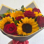 Surpreenda alguém especial com este luxuoso buquê composto por 10 unidades de exuberante folhagem, 6 sois radiantes sob a forma de girassóis e 8 unidades de rosas vermelhas, símbolo clássico do amor profundo. Acompanha também um encantador balão de coração para fazer o gesto ainda mais doce e significativo. Este arranjo inaudível é apresentado em uma embalagem moderna com um laço delicado para adicionar aquele toque extra de personalização. A combinação perfeita para segurar o coração de alguém com elegância e estilo.
