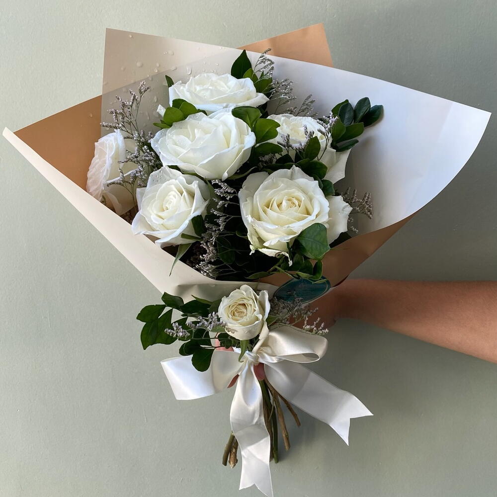 Este buquê é composto por rosas brancas naturais, selecionadas uma a uma, combinadas com folhagens verdes e flores secas delicadas, criando um contraste suave e sofisticado. A embalagem em papel neutro com laço em cetim branco finaliza a peça com elegância e cuidado artesanal. As rosas brancas simbolizam amor sincero, respeito, paz e novos começos. Ideal para: • Momentos especiais • Aniversários • Pedidos de desculpa (dos que vêm do coração) • Casamentos, noivados ou celebrações delicadas • Autopresente — porque o clássico também é autocuidado 🌸 Informações importantes: – Flores naturais e frescas – Montagem artesanal, cada buquê é único – Podem ocorrer pequenas variações conforme a disponibilidade das flores – Foto ilustrativa do nosso padrão de montagem Flores que não seguem tendência. Seguem sentimento. Porque o simples, quando bem feito, vira eterno. 🤍✨