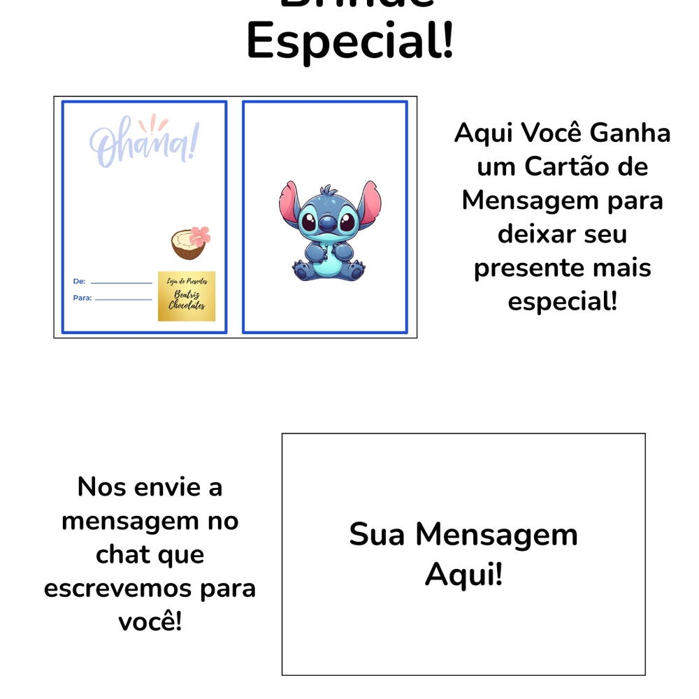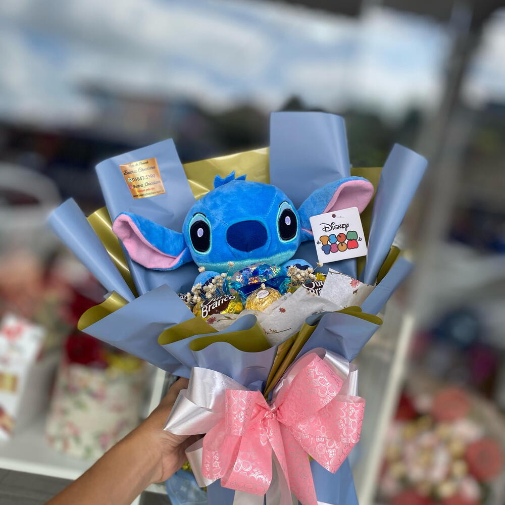 Encante com o Buquê Stitch — uma combinação irresistível de fofura, carinho e sabor! Com uma pelúcia original do Stitch (exatamente como na foto), este buquê traz uma rosa eterna brilhante, símbolo de um amor duradouro, acompanhada por deliciosos chocolates Sonho de Valsa e Ferrero Rocher. As flores sempre-vivas adicionam um toque delicado e atemporal, enquanto a embalagem elegante, finalizada com um laço caprichado, torna o presente ainda mais especial. Uma surpresa encantadora para quem você ama — doce, inesquecível e cheia de personalidade!