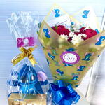 rosa vermelhas - 4 pcs ferrero rocher com 8 unidades - 1 pcs sticht azul - 1 pcs