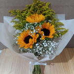 Este maravilhoso buquê é meticulosamente montado com três radiantes girassóis, acrescentando uma pitada de vivacidade e alegria ao seu dia. Acompanhado de treze hastes de flores expressivas, o arranjo se completa com uma linda embalagem e um sofisticado laço. Envolvido por uma unidade de folhagens para um toque extra de frescor e naturalidade, nosso buquê irradia felicidade e vida em qualquer ambiente. Ideal para presentear alguém especial ou simplesmente para decorar e iluminar o seu espaço próprio.