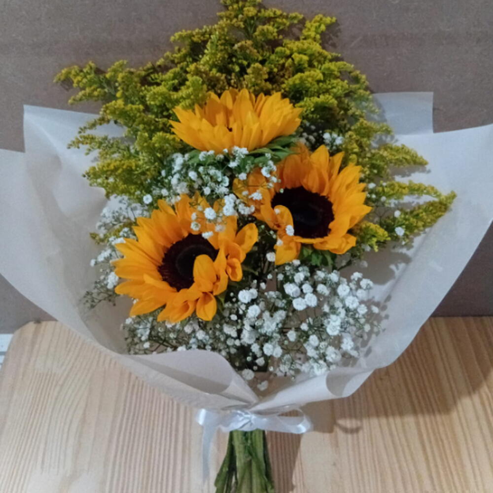 Este maravilhoso buquê é meticulosamente montado com três radiantes girassóis, acrescentando uma pitada de vivacidade e alegria ao seu dia. Acompanhado de treze hastes de flores expressivas, o arranjo se completa com uma linda embalagem e um sofisticado laço. Envolvido por uma unidade de folhagens para um toque extra de frescor e naturalidade, nosso buquê irradia felicidade e vida em qualquer ambiente. Ideal para presentear alguém especial ou simplesmente para decorar e iluminar o seu espaço próprio.