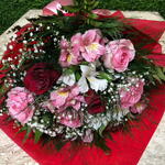 Este buquê é uma combinação majestosa de cores, texturas e aromas para iluminar o seu dia. Composto por 1 unidade de encantadora gipsofila, 6 unidades de belas rosas rosas, 1 unidade de verdejantes folhagens, 1 unidade de deslumbrante astromelia e 6 unidades de apaixonantes rosas vermelhas. Este buquê irá transbordar em qualquer ambiente a alegria e elegância, perfeito para presentear e encantar quem você ama. Uma peça de pura beleza que expressa sentimentos de amor e apreciação.