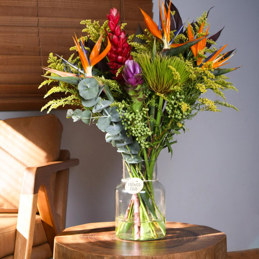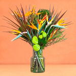 O Buquê Toque Tropical é a escolha certa para um clima tropical, colhido na semana e vindo diretamente do produtor para você. Ideal para dar vida à mesa, sala ou cozinha. -Flores de inspiração tropical; -As flores podem ser diferentes da foto - serão as flores disponíveis na semana; -Detalhes Quantidade: entre 12 - 20 hastes de flores e folhagens Altura: 60 cm *Enviamos apenas o buquê, sem o vaso, mas confira nossas dicas para criar seu próprio arranjo tropical no seu vaso.