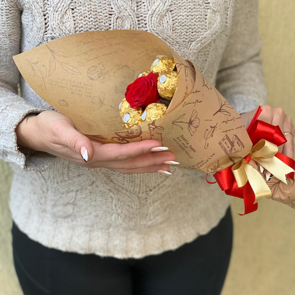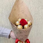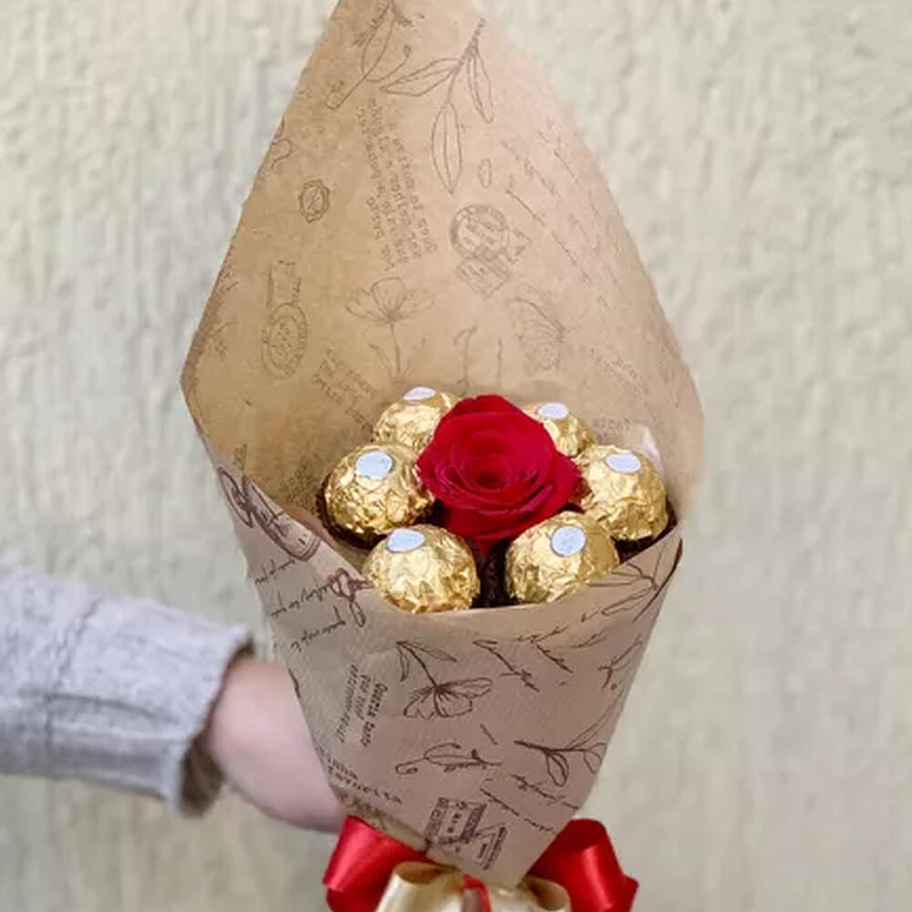 rosa - 1 pcs ferrero rocher - 6 pcs laço em cetim - 1 pcs embalagem karft - 1 pcs