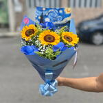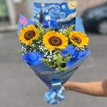 Este charmoso buquê é um verdadeiro tesouro artístico, compostos por uma foto de Van Gogh, três deslumbrantes girassóis e folhagens cuidadosamente selecionadas. O conjunto vem elegantemente embalado, criando uma apresentação inesquecível. Ideal para demonstrar afeto ou agradecimento a alguém especial.