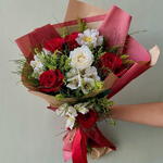 astromelia branca - 3 pcs rosa branca avalanche - 1 pcs rosa vermelha local - 4 pcs