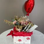 box decorada - 1 pcs pit stop - 2 pcs bombons sortidos - 3 pcs drip coffee (café individual) - 2 pcs balão metalizado pequeno - 1 pcs pão de mel cory 90g - 1 pcs barra de chocolate 75g - 1 pcs mini buquê na xícara - 1 pcs