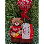 Este lindo Kit de Presente é perfeito para expressar seus sentimentos mais profundos. Composto por uma adorável pelúcia para aconchegar, uma caixa de Rafaello para adoçar a vida, um romântico balão Te amo e finalizado com um delicado bombom. Todos esses itens são cuidadosamente acomodados em uma elegante caixa, tornando-o o presente perfeito para aquela pessoa especial.