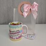 Com este charmoso kit de presente, você repensa o conceito de dar. A bolsa sacola com alça de courino garante sofisticação e durabilidade para qualquer ocasião. A caneca personalizada com tessel levará alegria e um toque de personalidade ao dia a dia do presenteado, enquanto os deliciosos bombons wafer são a indulgência perfeita para agradar o paladar. Um kit pensado com carinho nos mínimos detalhes, ideal para surpreender e encantar.