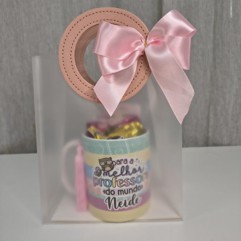 bolsa sacola alça courino - 1 pcs caneca personalizada com tessel - 1 pcs bombons wafer - 2 pcs