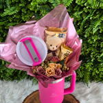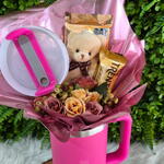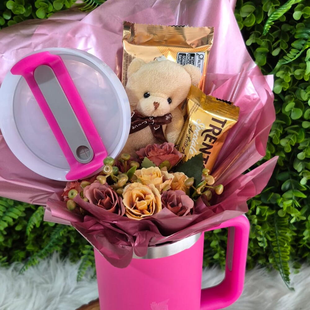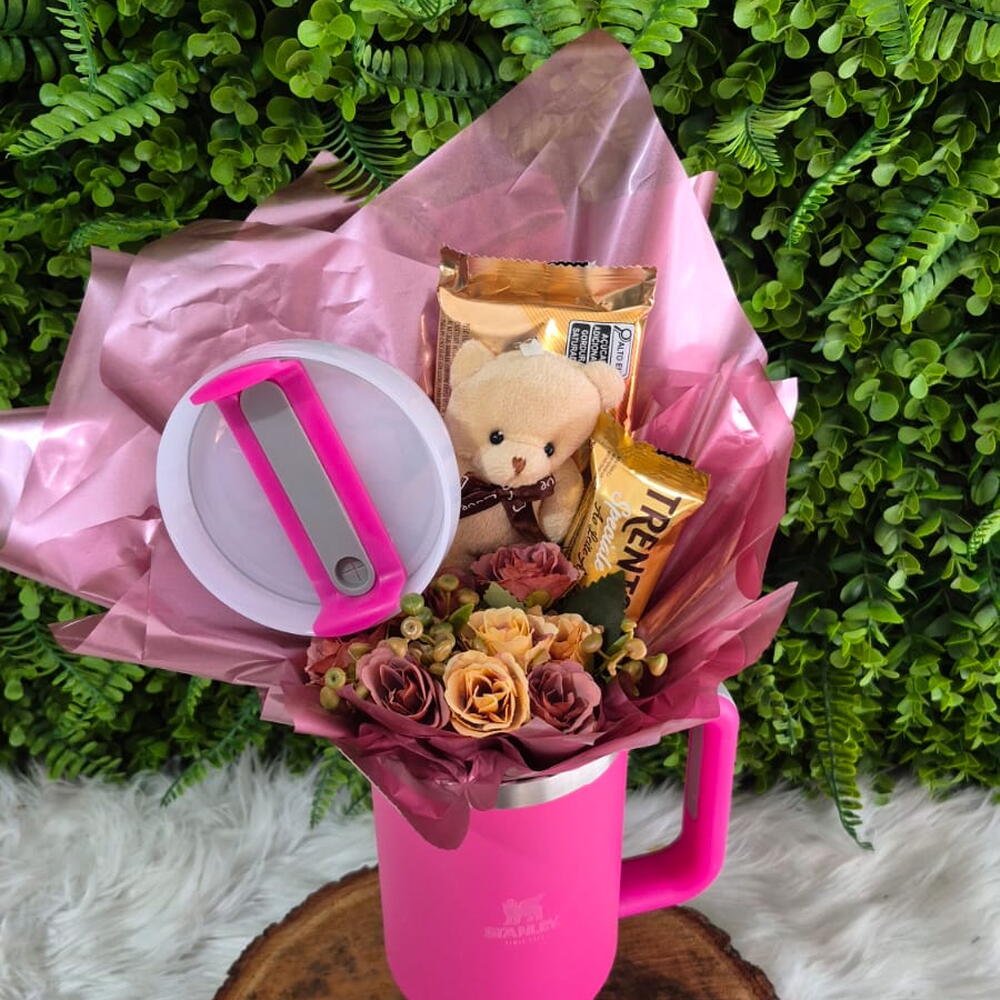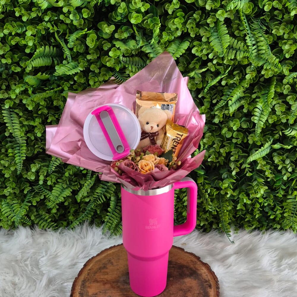 Encante com um presente criativo, delicado e cheio de personalidade 💗 Nossa Caneca Stanley Pink vai muito além de um simples presente. Ela acompanha um lindo arranjo floral em tons rosé e nude, cuidadosamente montado com flores permanentes, trazendo charme e elegância à composição. Para deixar o momento ainda mais especial, o kit inclui: ✨ Um chaveiro de ursinho de pelúcia super delicado 🍫 Chocolates selecionados 🌸 Acabamento sofisticado com papel especial Perfeita para surpreender em aniversários, datas comemorativas ou simplesmente para demonstrar carinho de um jeito único e inesquecível. Um presente útil, afetivo e encantador — do jeitinho que a Impressione Flores prepara para emocionar 💐💝