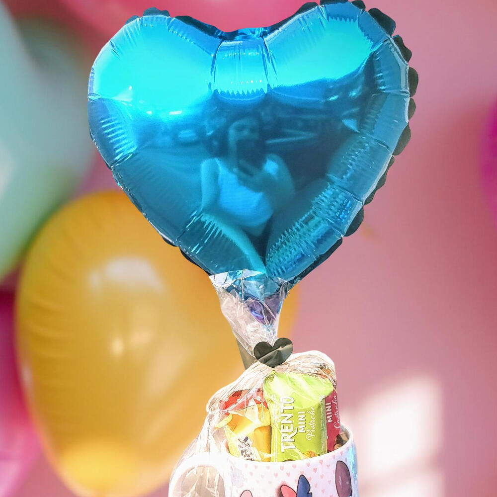 balão - 1 pcs embalagem celofane - 1 pcs chocolates sortidos - 5 pcs caneca de porcelana personalizado com nome - 1 pcs