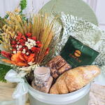 Uma pausa deliciosa para demonstrar carinho e gratidão! A Cesta Café da Tarde Gratidão é um presente encantador ideal para Surpreender alguém especial com um toque de afeto e elegância. Contém: 1 buquê de flores secas perfumadas premium, que poderá ser guardada por anos pela presenteada (o) como item de decoração, brownie de barra de chocolate artesanal, cappuccino artesanal em pote de vidro, croissant folhado francês amanteigado e drip coffee Orfeu (café para coar especial) ou chá caso seja a preferência. Embalagem cartonada premium com fita de cetim e cartão de mensagem. Obs: As cores do buquê pode haver variação de cores, mas sempre preservando a harmonia.