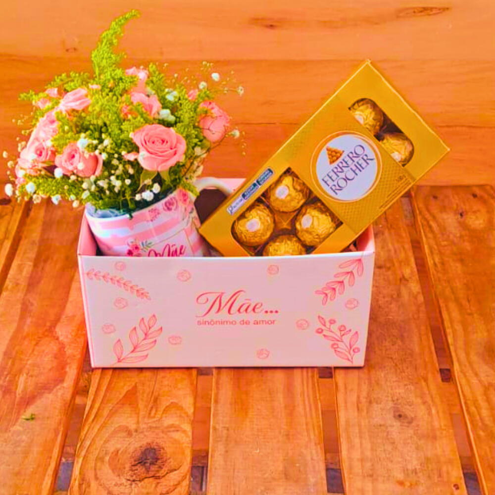 bombons ferrero rocher - 1 pcs caixa box mãe sinônimo de amor - 1 pcs arranjo caneca mãe você é incrível - 1 pcs