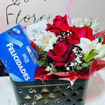 chocolate - 1 pcs arranjo de rosa e flores com complementos - 1 pcs