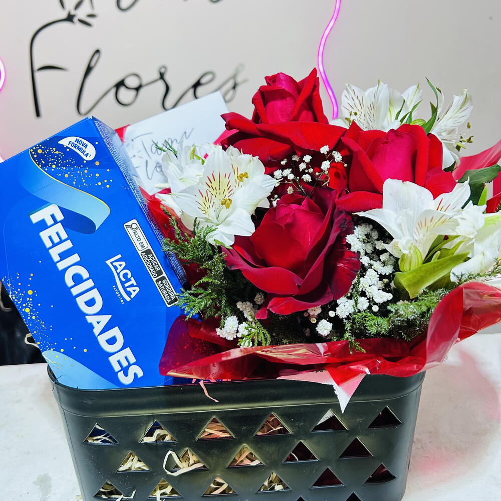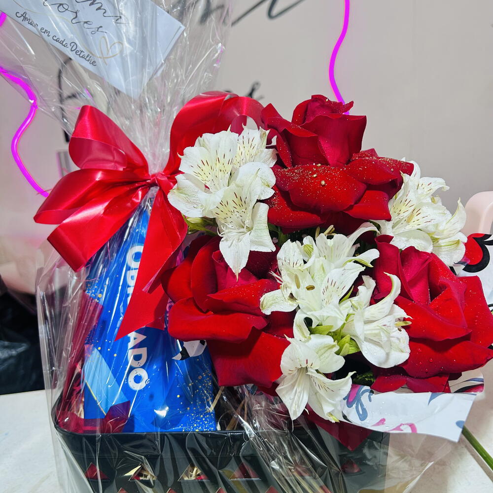 Este maravilhoso kit de presente é a expressão perfeita do amor e do carinho. Seu arranjo deslumbrante de rosas e outras flores é complementado por um delicioso chocolate, tornando-o o presente ideal para qualquer ocasião ou para simplesmente demonstrar seu apreço.