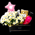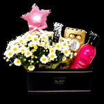 laço de cetim - 1 pcs mini balão - 1 pcs embalagem celofane - 1 pcs batom - 1 pcs caixa de presente - 1 pcs linda margarida - 1 pcs hidratante nativa spa - 1 pcs ferrero rocher 50gr (4 bombons) - 1 pcs
